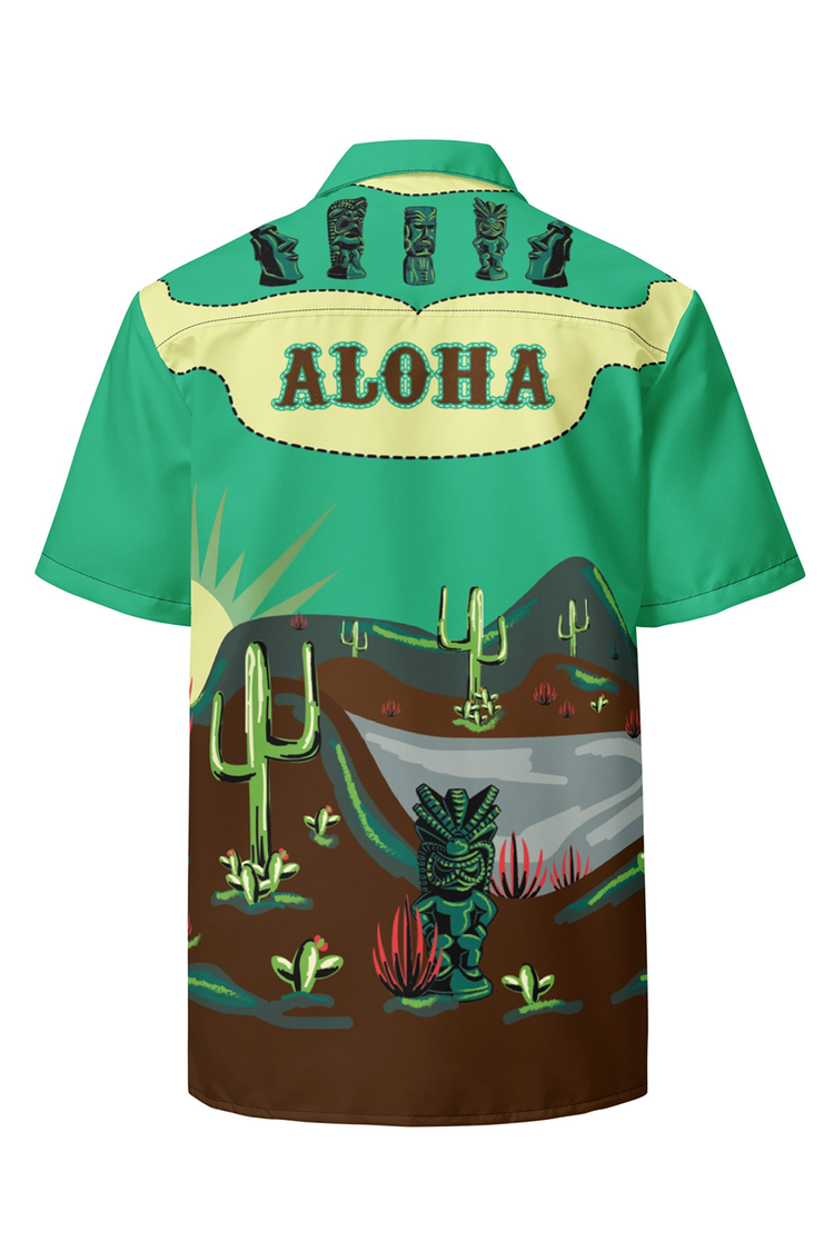 Aloha partners! Our custom Tiki Western Aloha button down is perfect for any western themed tiki event! This shirt runs big so please check the size chart. If you would like a matching set, size down for women.