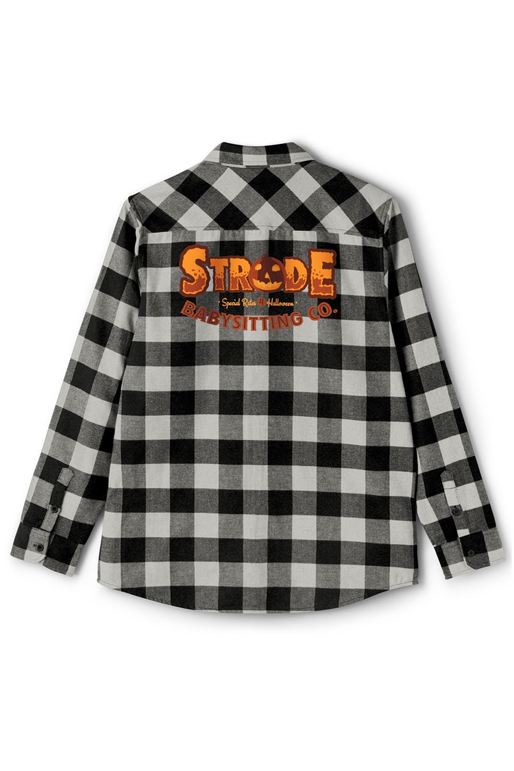 Call Strode Babysitting Co. today for all your Halloween babysitting needs! Our custom flannel features our Strode Babysitting Co. Logo on the back with a Laurie patch printed on the front left pocket.