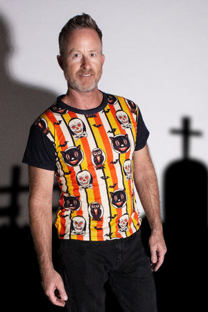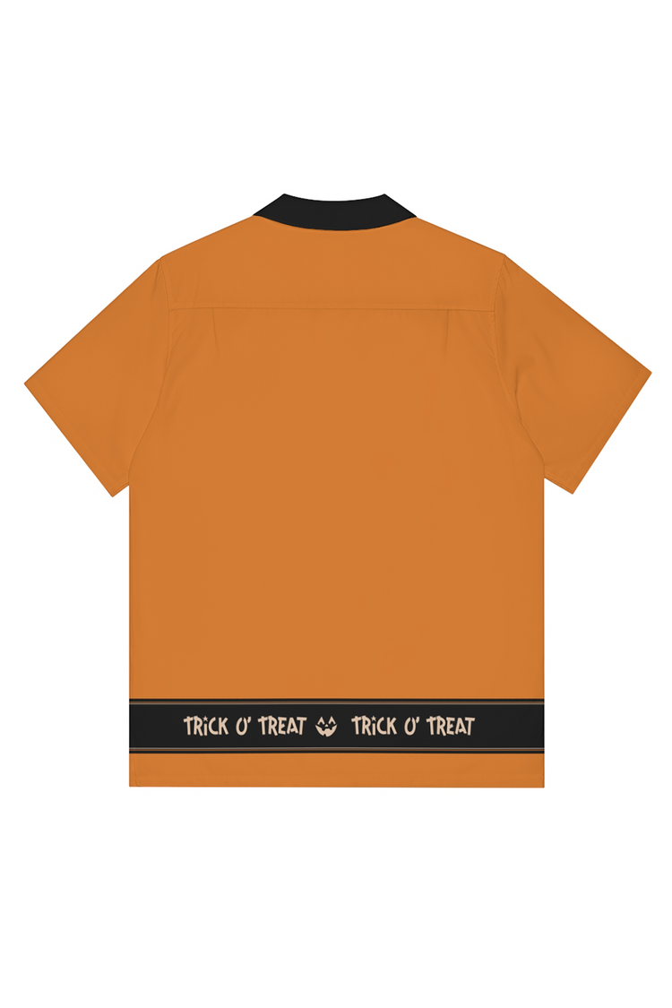Our NEW button Trick O' Treat button down shirt is the perfect match to our dress and skirt! With our classic Trick O' Treat along the border of the shirt and contrast collar and cute pumpkin face above the pocket.
