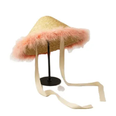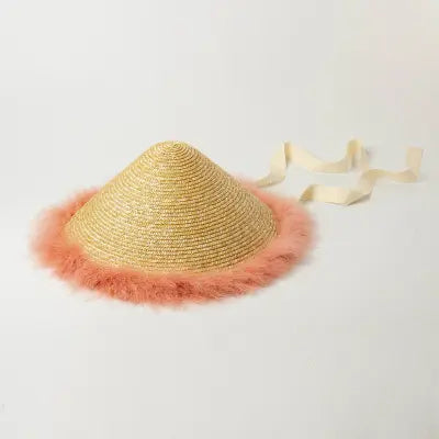 Fancy Feathers Straw Hat Pink