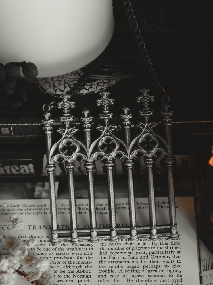 Inspired by a walk we took last fall in our favorite cemetery in Portland Oregon. Our first ever necklace designed in house that is the perfect statement piece and can easily be stacked with other necklaces.