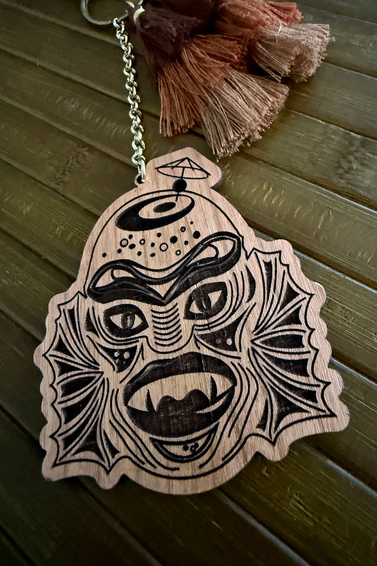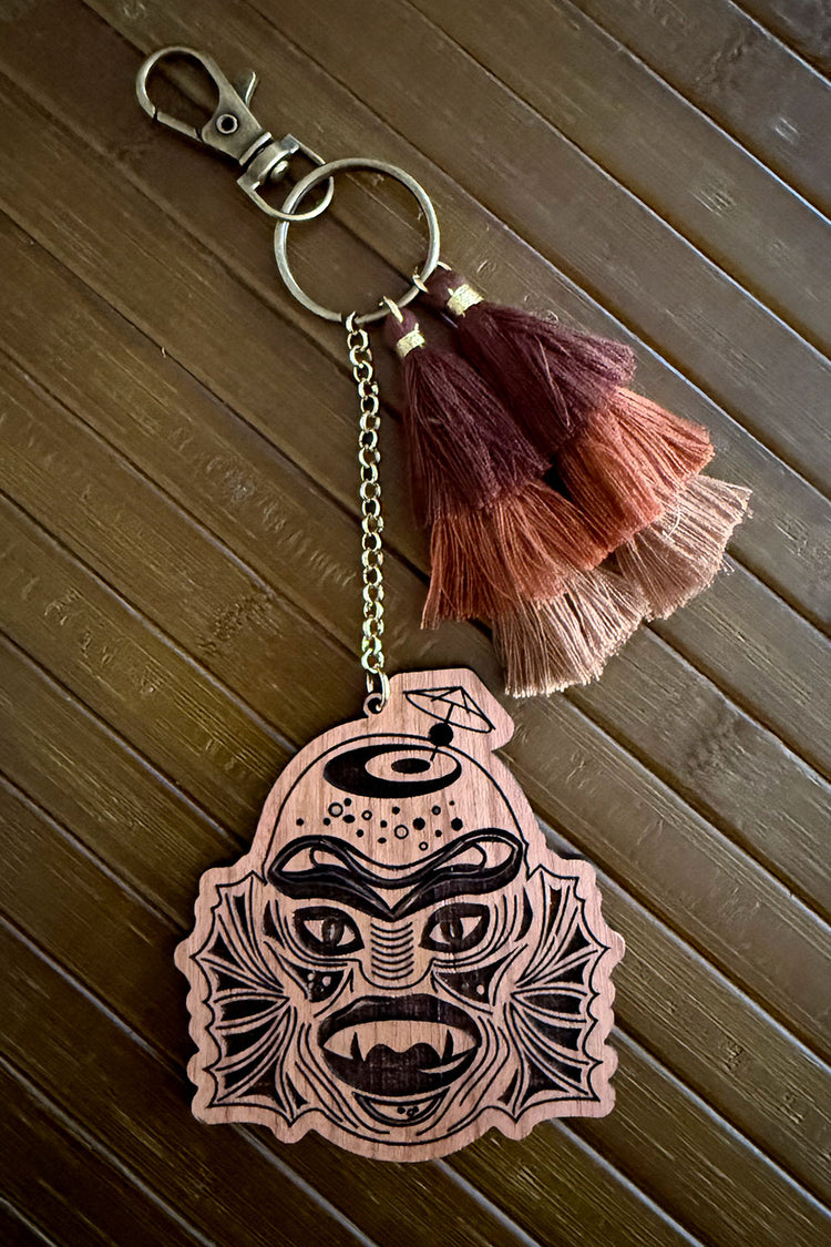 Swamp Creature Tiki Mug Wood Engraved Keychain