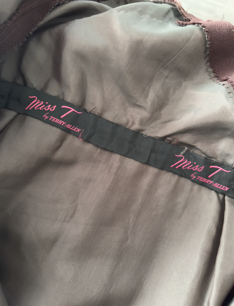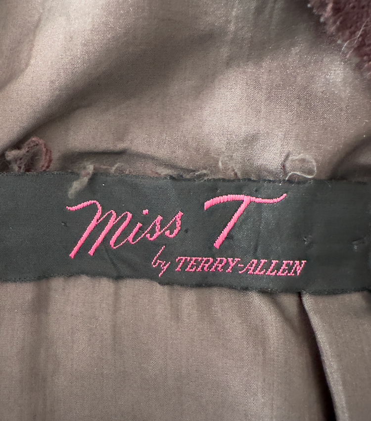 Stunning chocolate brown wiggle dress with velvet and mesh V-neckline.
