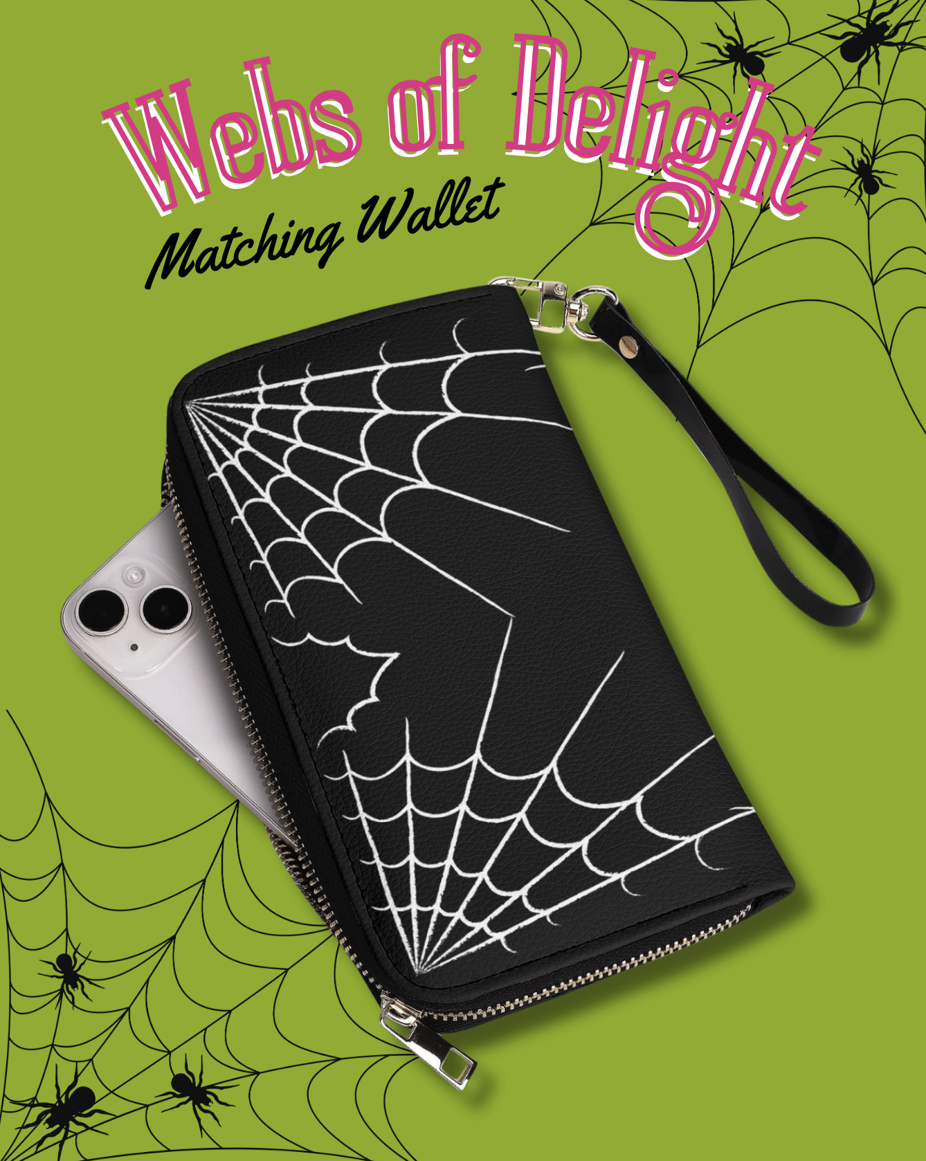 Glamour Ghoul Pink Spiderweb PU Leather Zipper Wallet