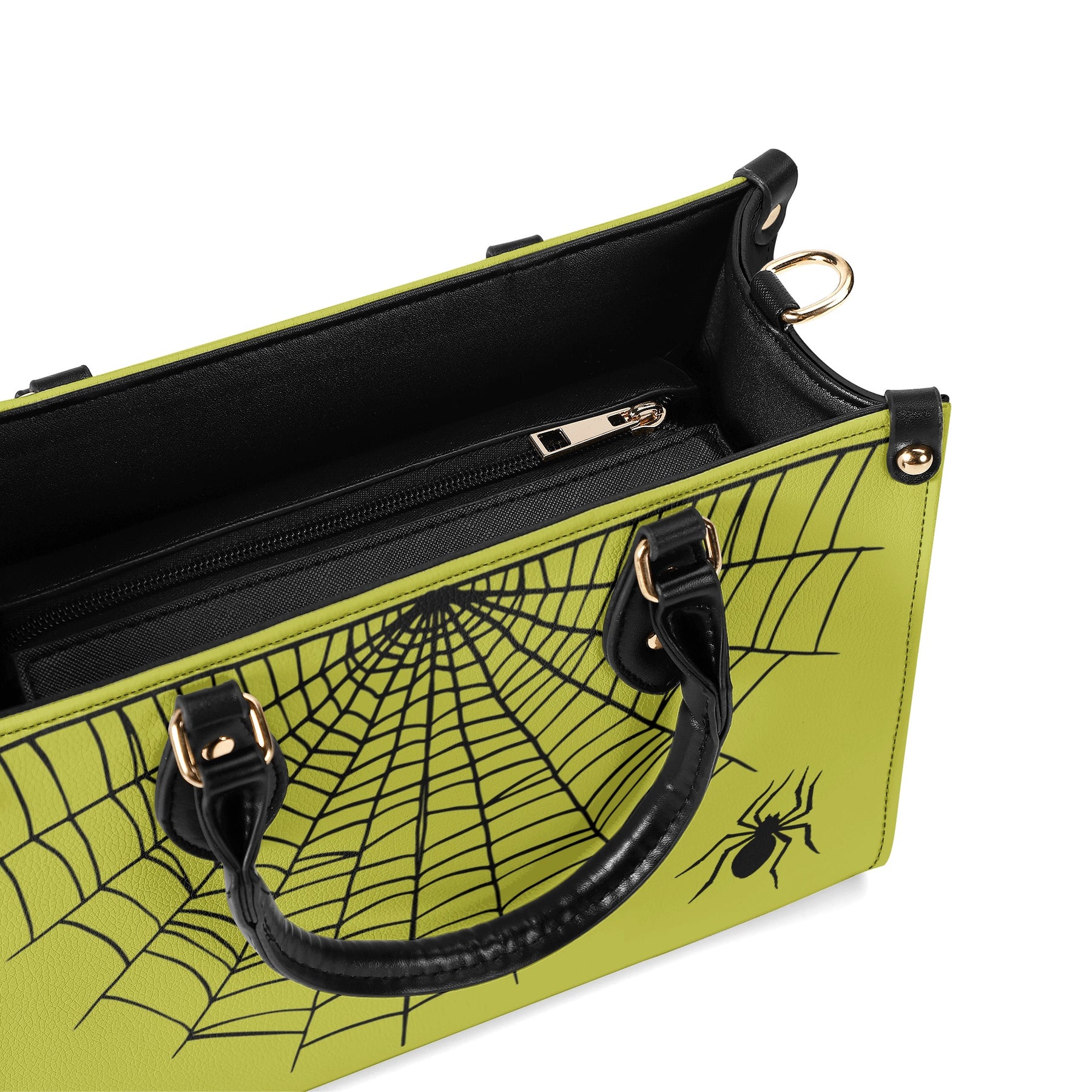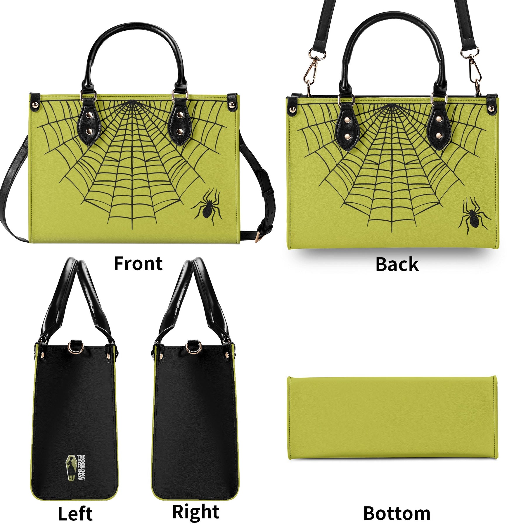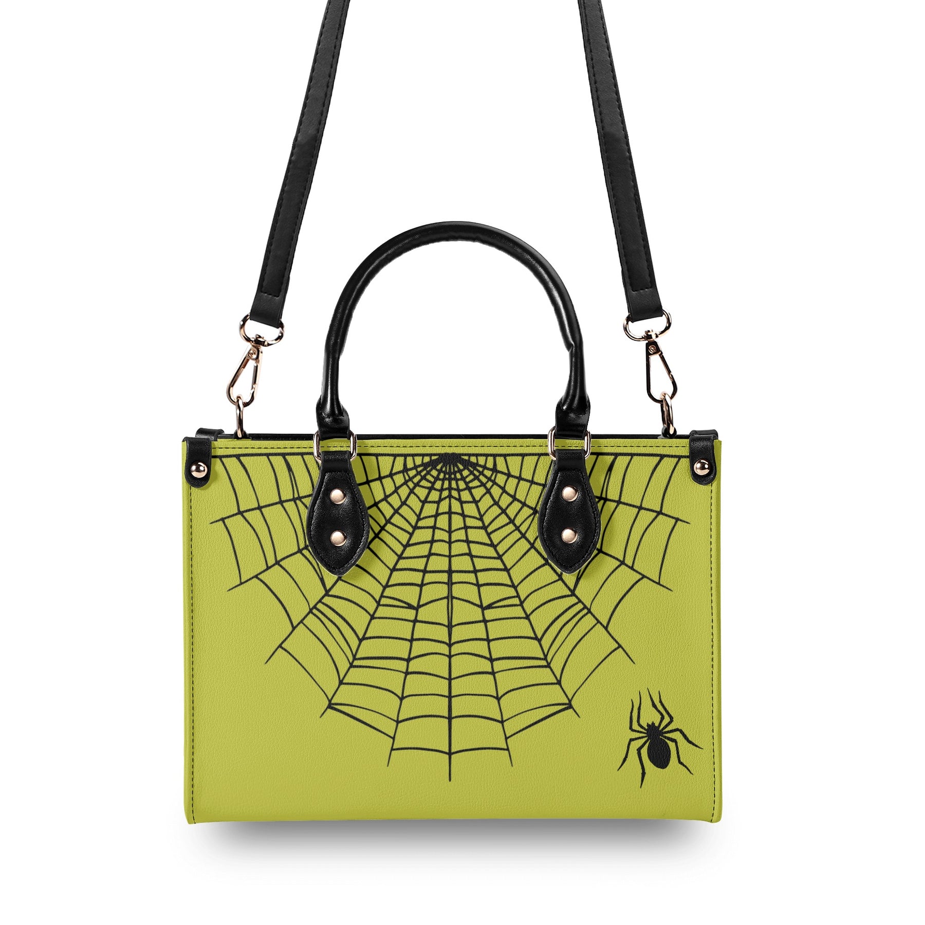 My very popular Glamour Ghoul design is back on a fun purse! Featuring chartreuse green with black web and black accents. Comes with an adjustable shoulder strap and is available in 3 sizes!