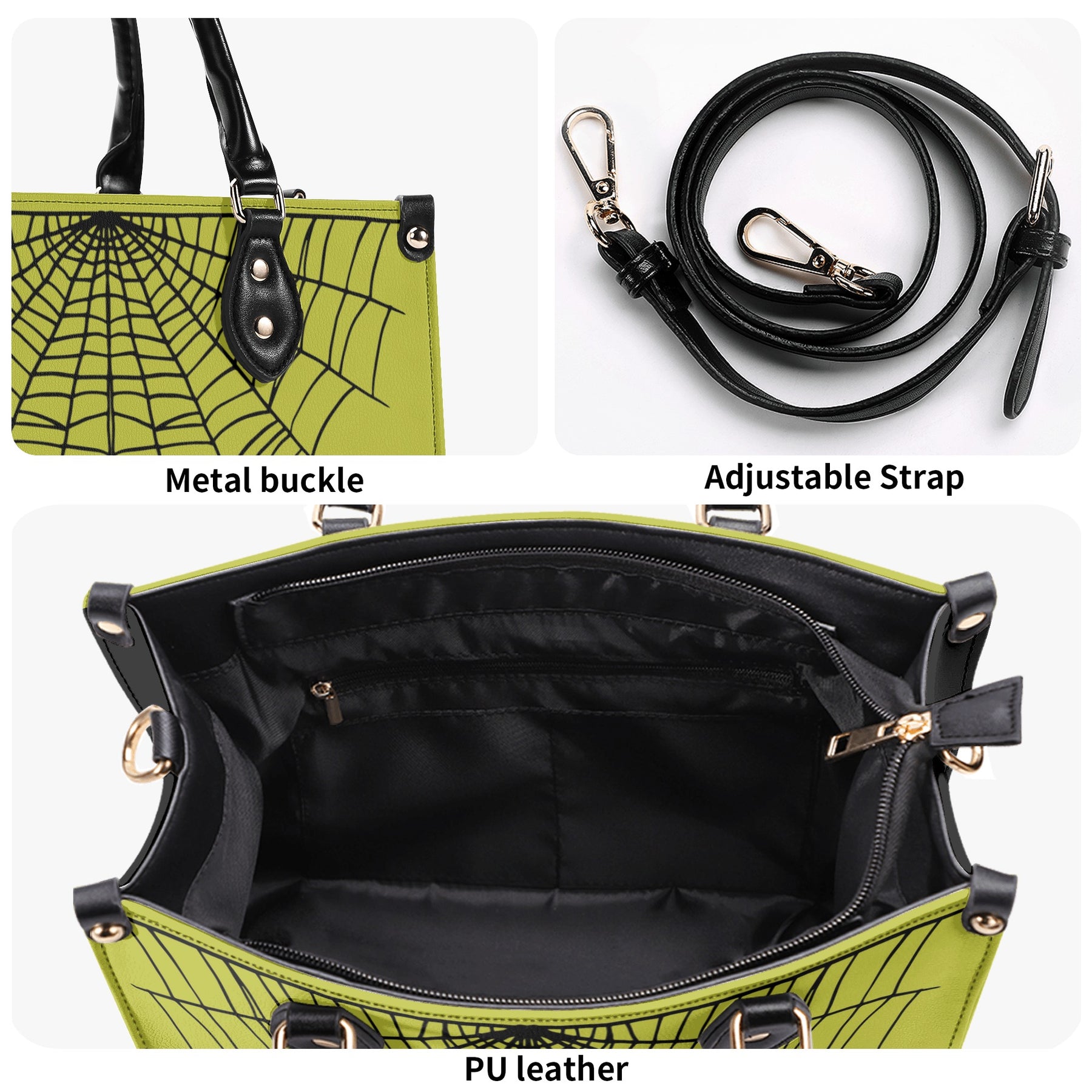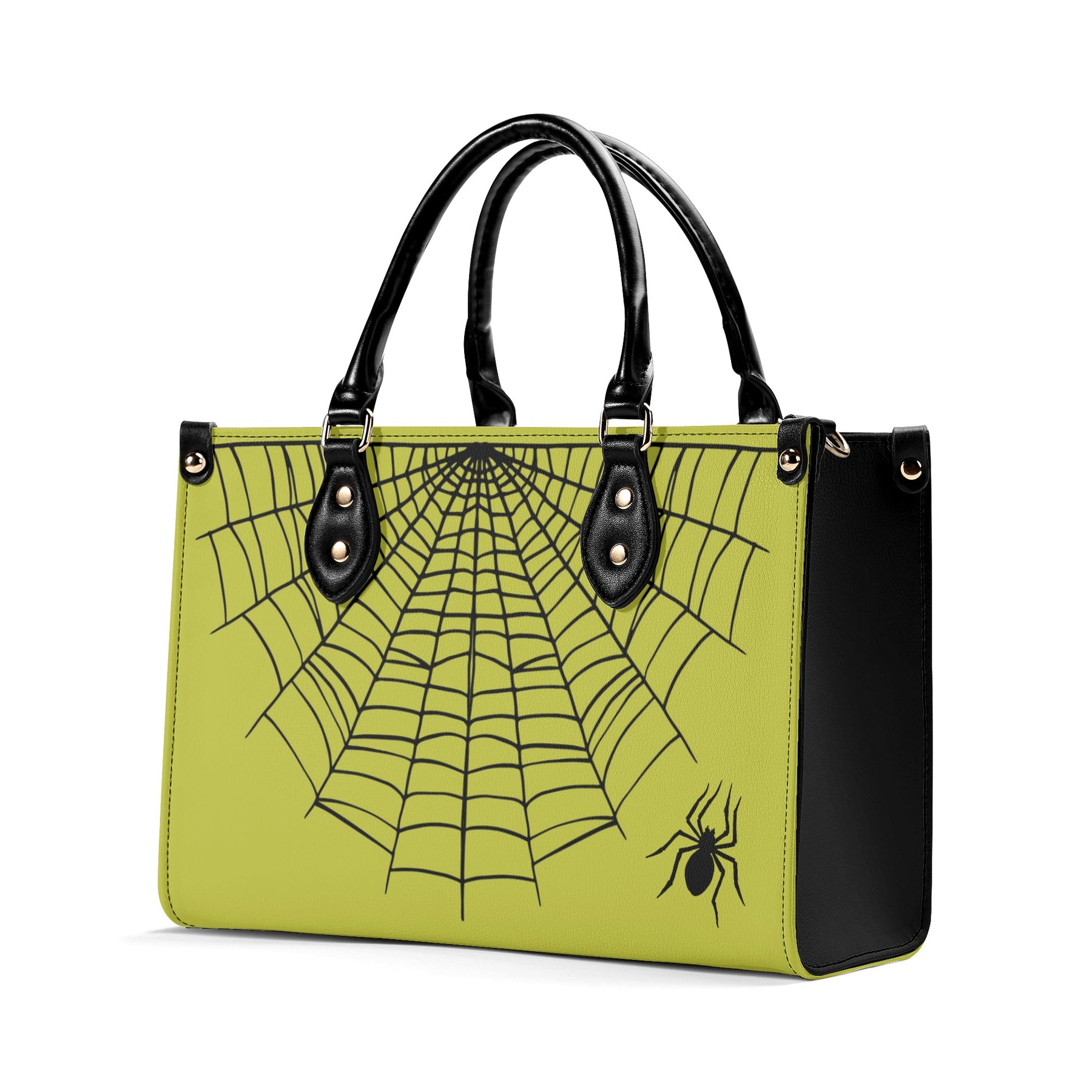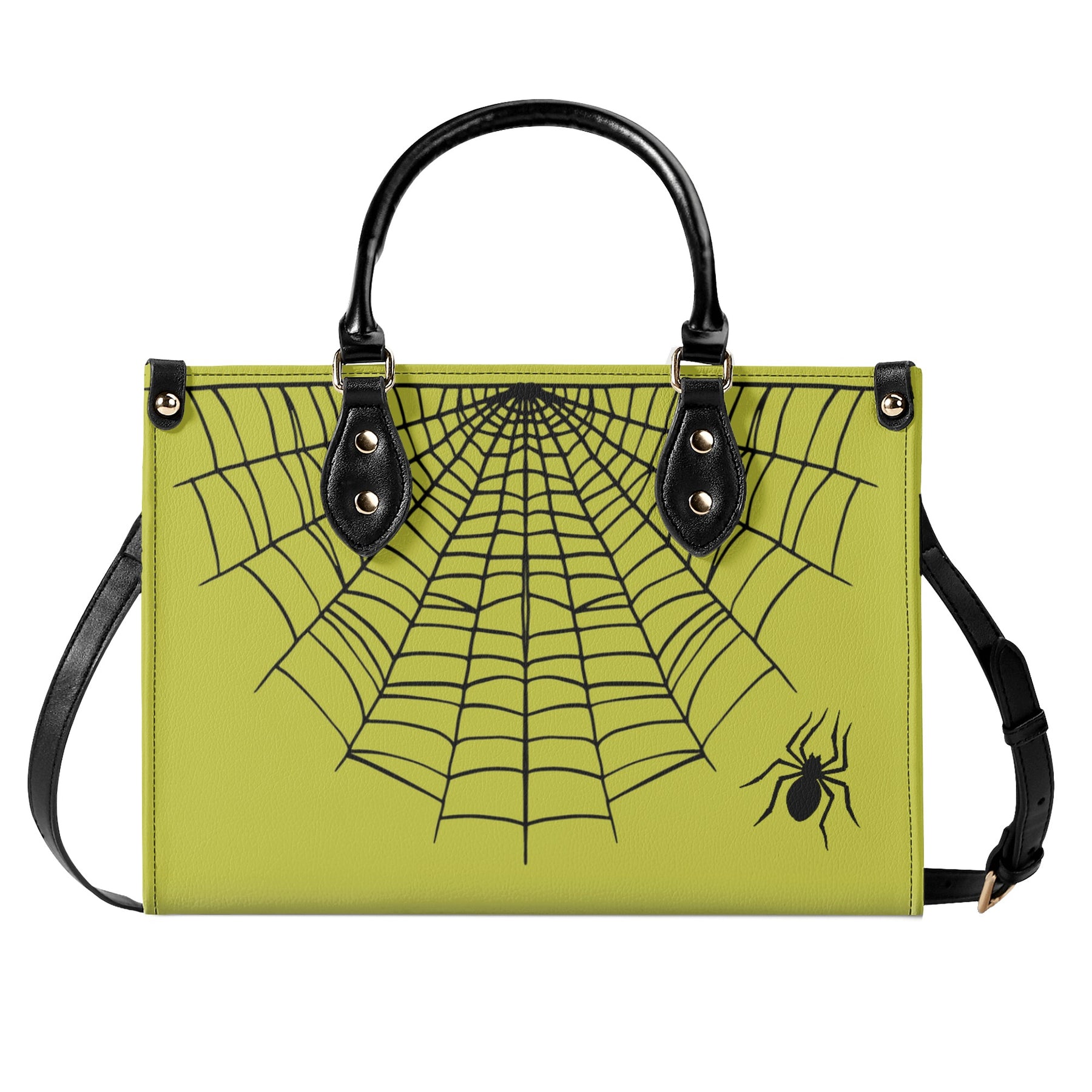 My very popular Glamour Ghoul design is back on a fun purse! Featuring chartreuse green with black web and black accents. Comes with an adjustable shoulder strap and is available in 3 sizes!