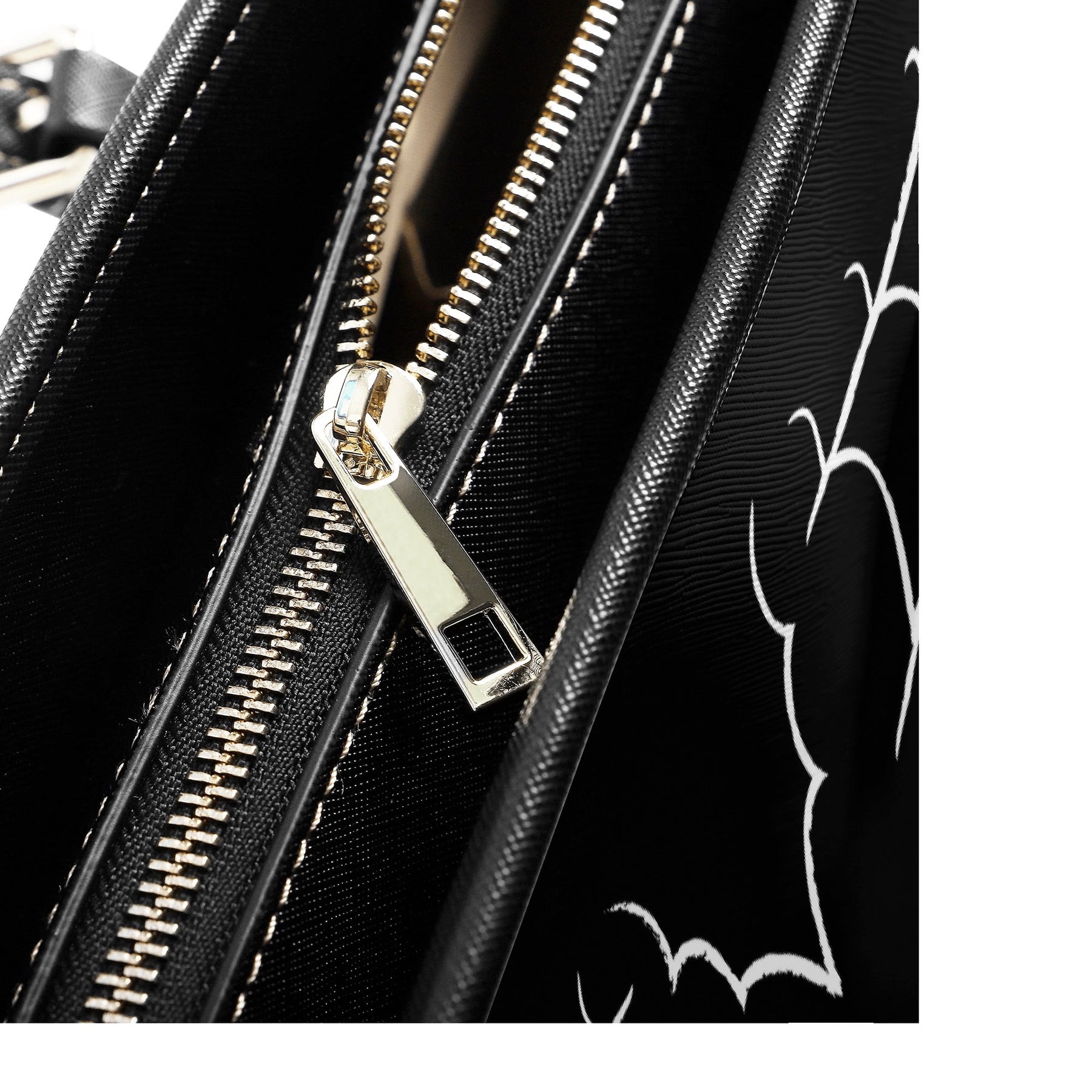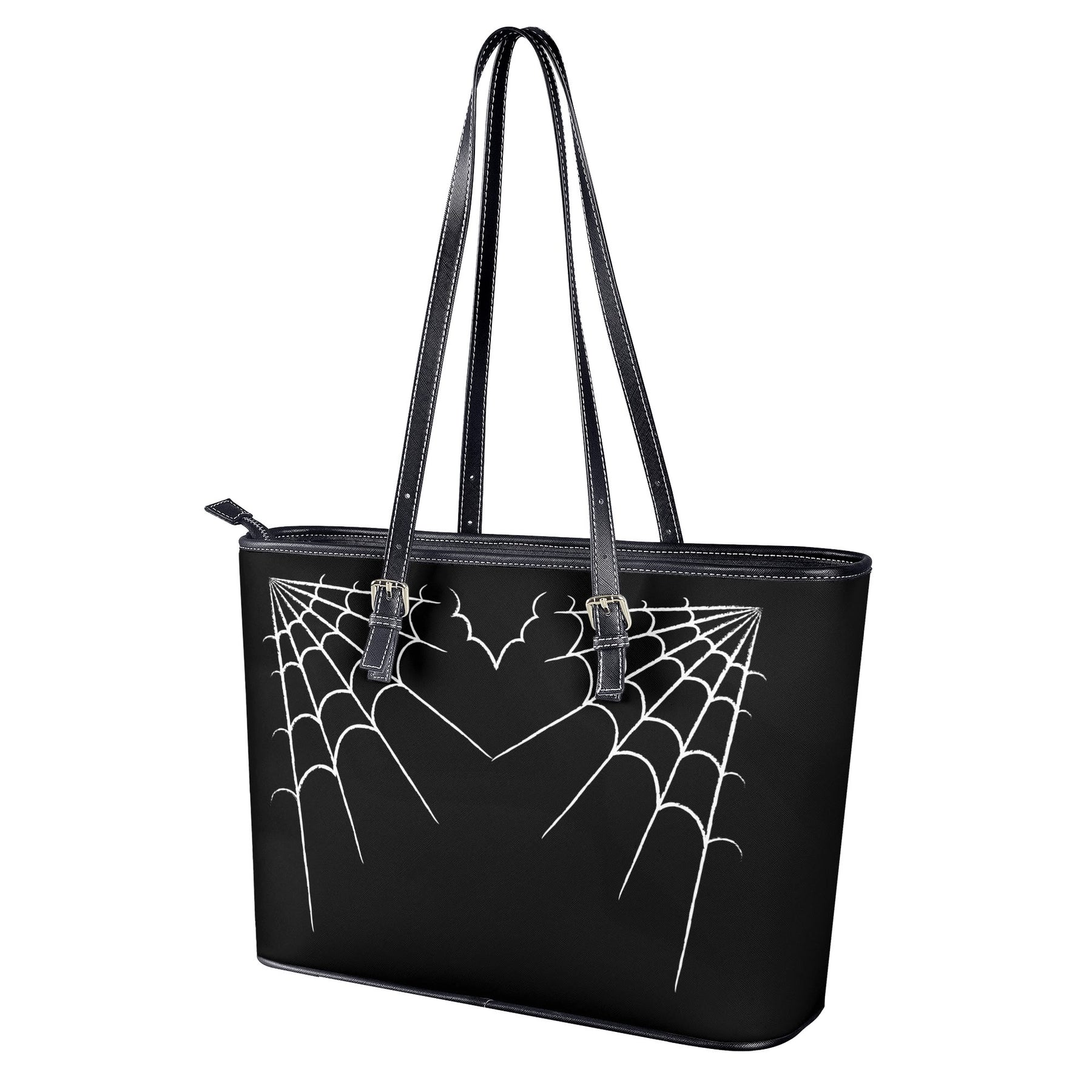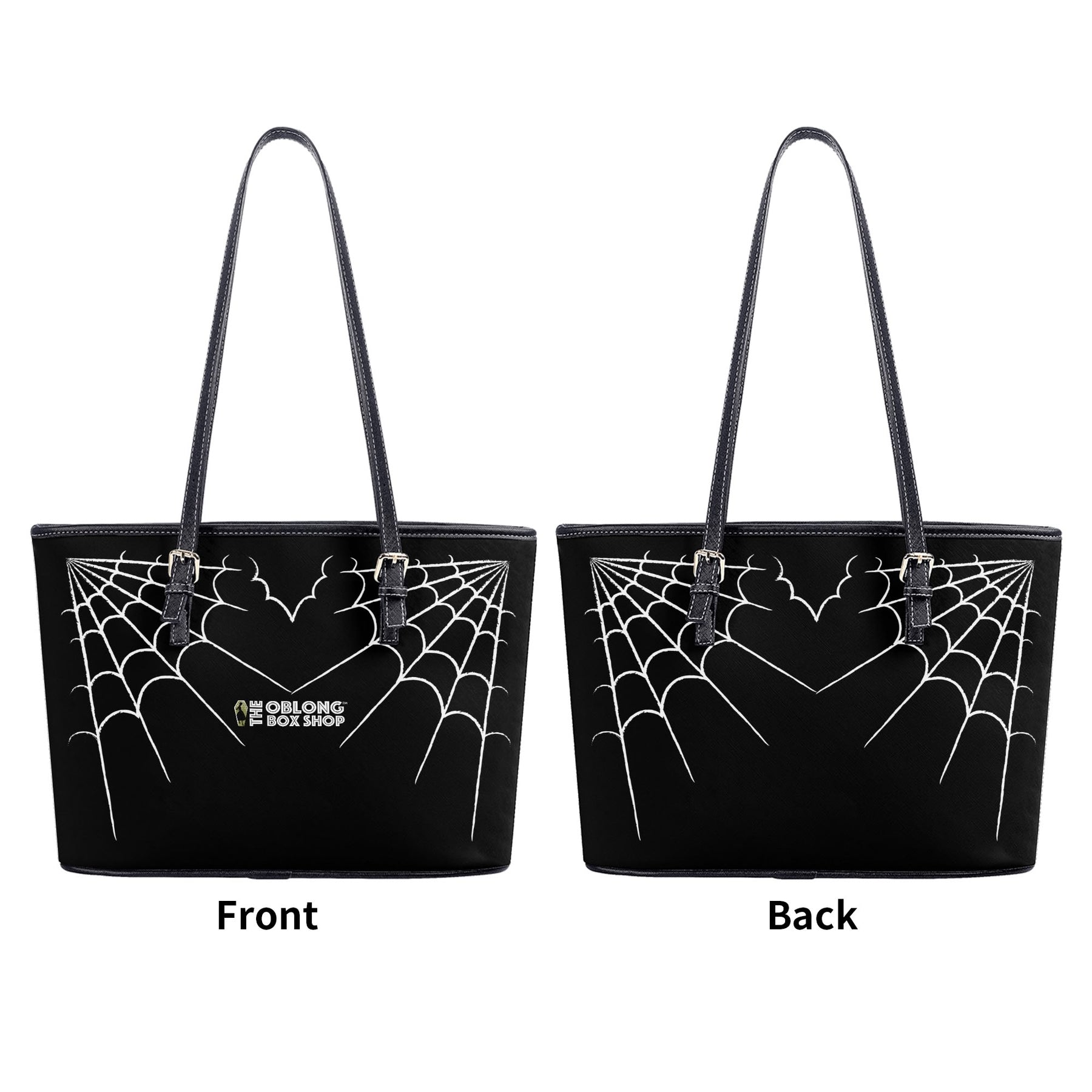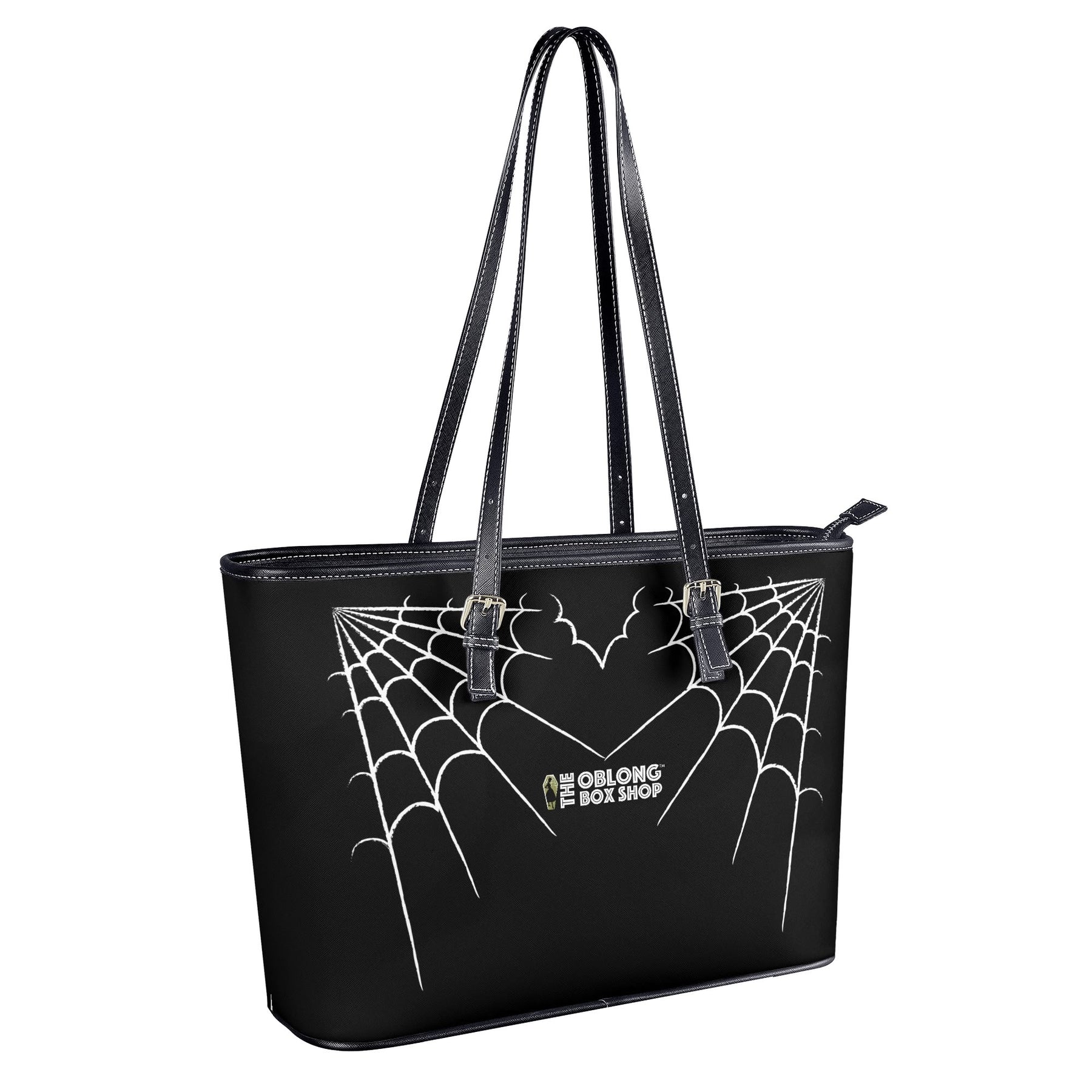 Our very popular Webs of Delight design is now available on a tote bag! Featuring high quality PU leather - faux leather - this bag comes in 2 sizes! With black background and white webs printed on the front and back - there's a ton of room inside for all your spooky essentials!