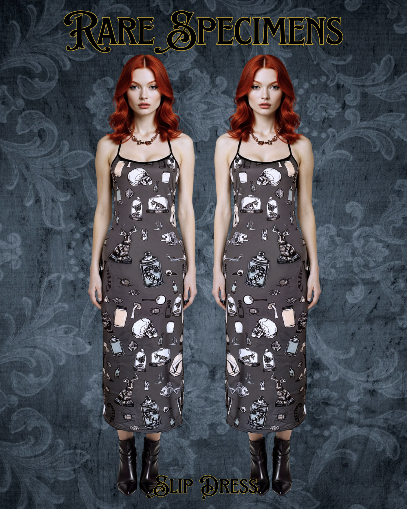 Rare Specimens Oddities Print Slip Dress with Side Slit - PRE-ORDER