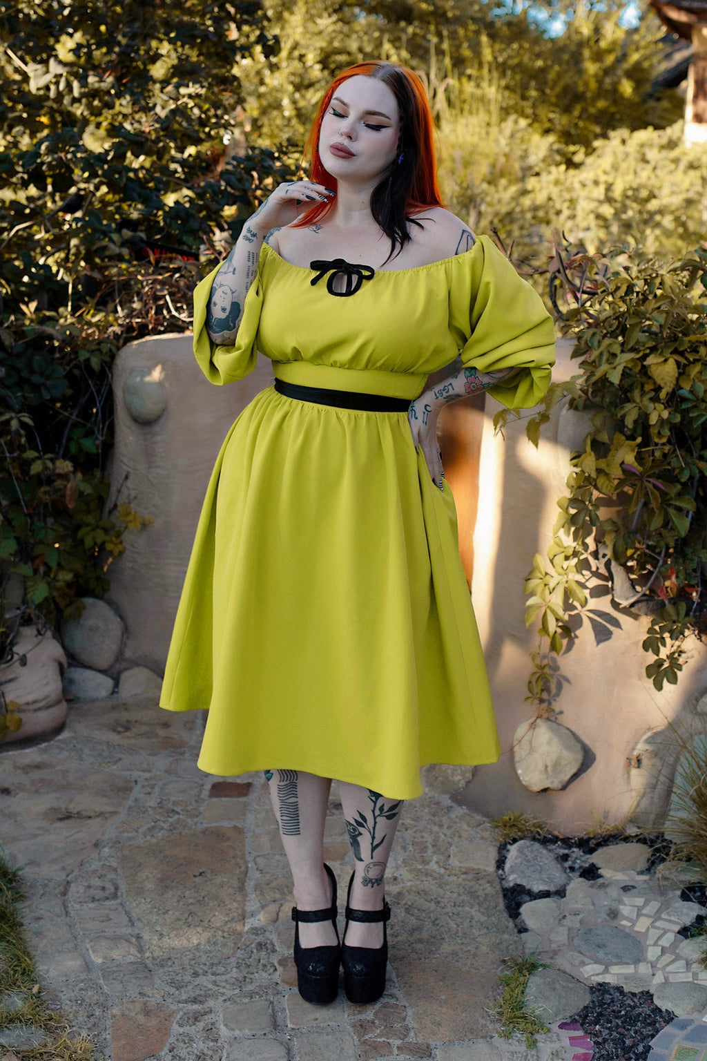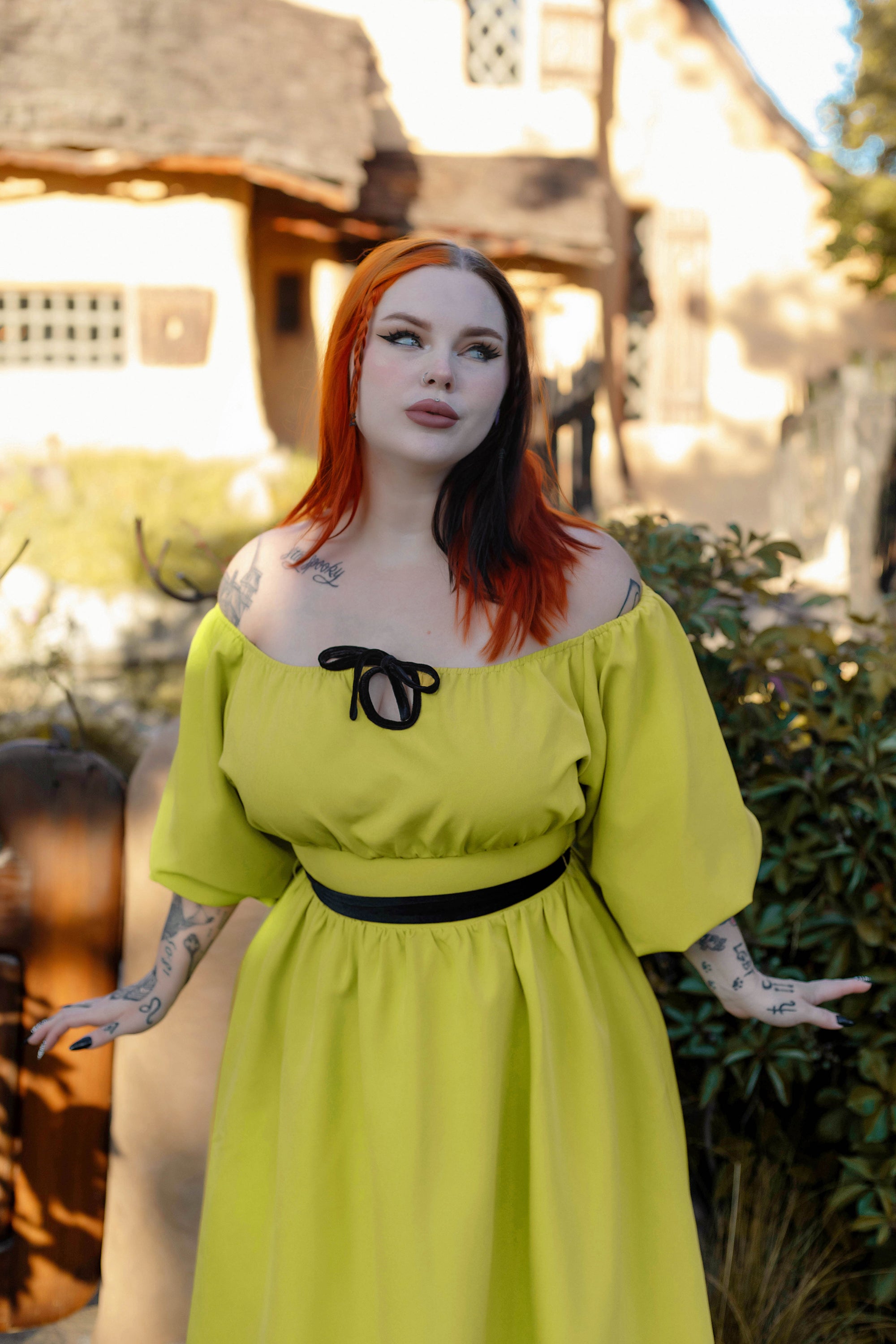 My new Eva dress is the perfect staple dress for any girl who likes to dress up but also be comfortable. Featuring soft and stretchy poly crepe fabric with elastic peasant top style neckline, that can be worn up or off the shoulders. Sleeves are 3/4" length with a stunning balloon style for a dramatic look. With velvet keyhole tie on the top and a velvet waist tie to elevate this look. And of course pockets! Elastic waist for ultimate stretch and comfort.