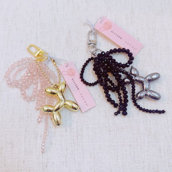 Balloon Dog Bag Charm With Beaded Bow