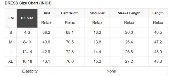 See size chart for approximate measurements.