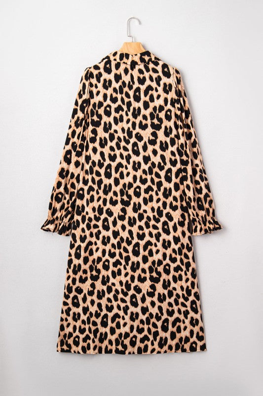 Leopard Smocked V-Neck Flowy Midi Dress