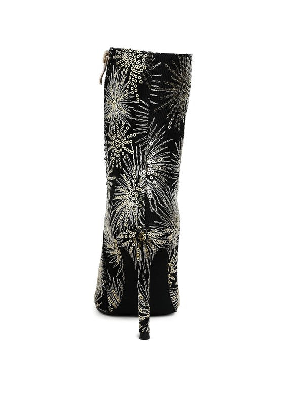 Oleander Sequin Starburst Embellished Stiletto Boots