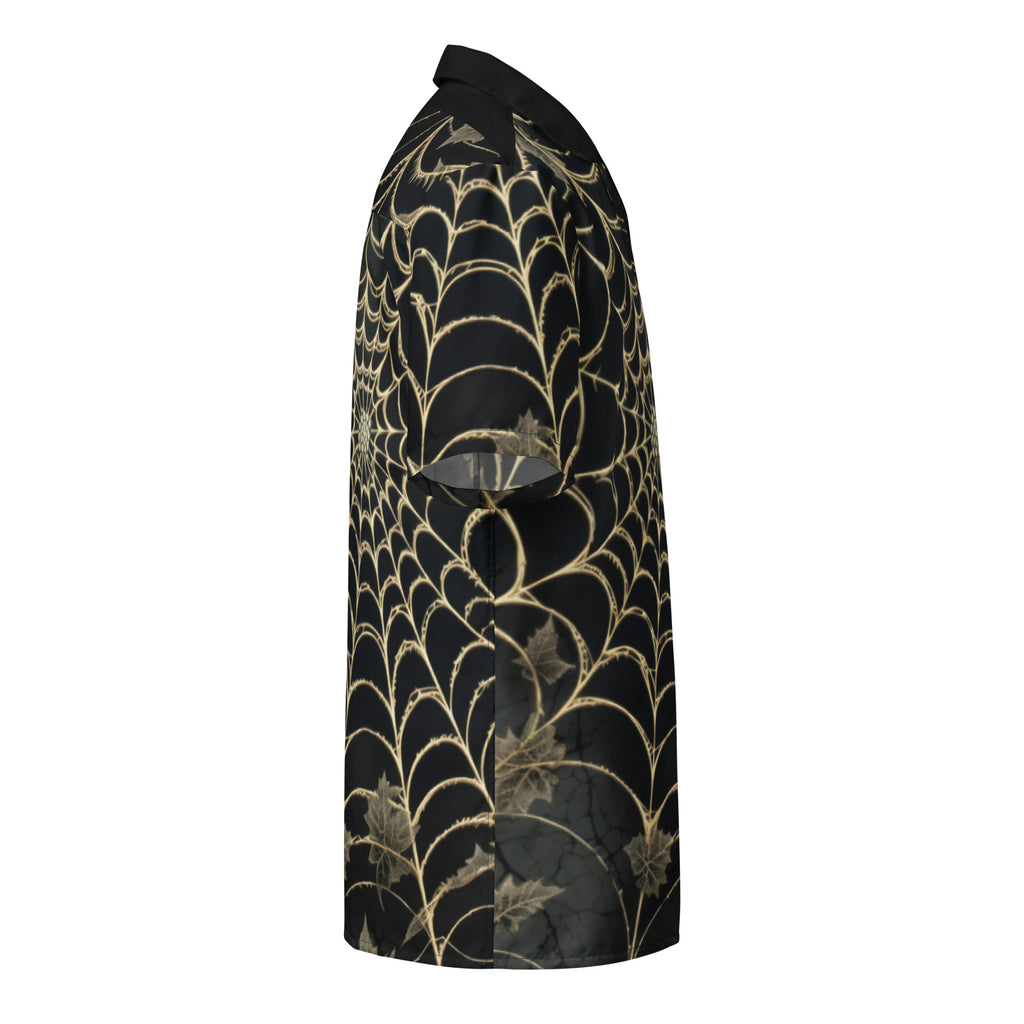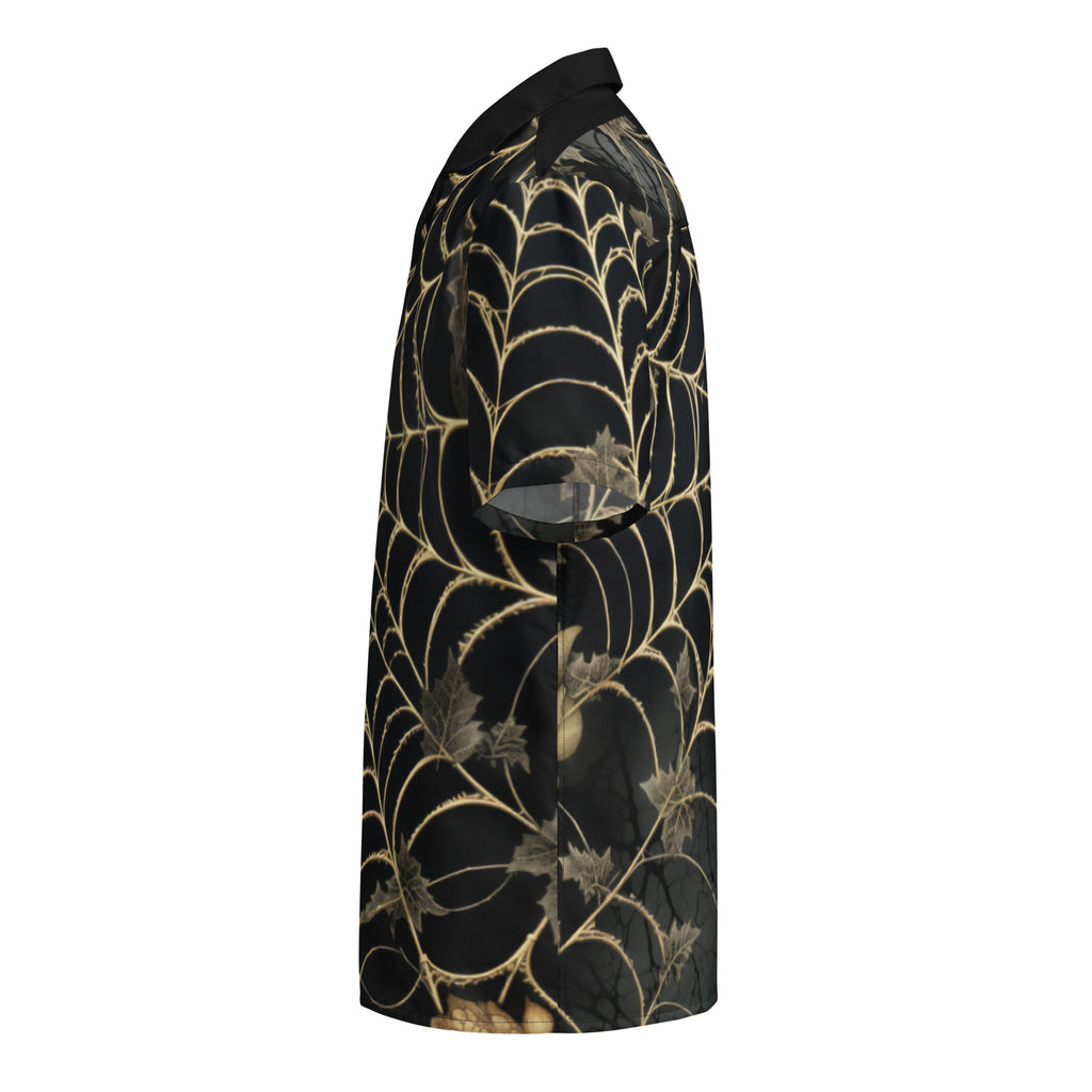For a button down shirt that perfectly complements this collection, look no further than our Vintage Webs design! With a black collar and front buttons that add a pop of contrast, this shirt is the definition of cool and comfortable for the summer months.
