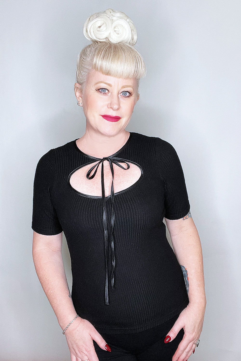 Featuring soft and stretchy poly-spandex material with a cute keyhole neckline with satin tie. Half length sleeves. These tops run small so size up! Please read the size chart carefully. These tops are final sale, no returns.
