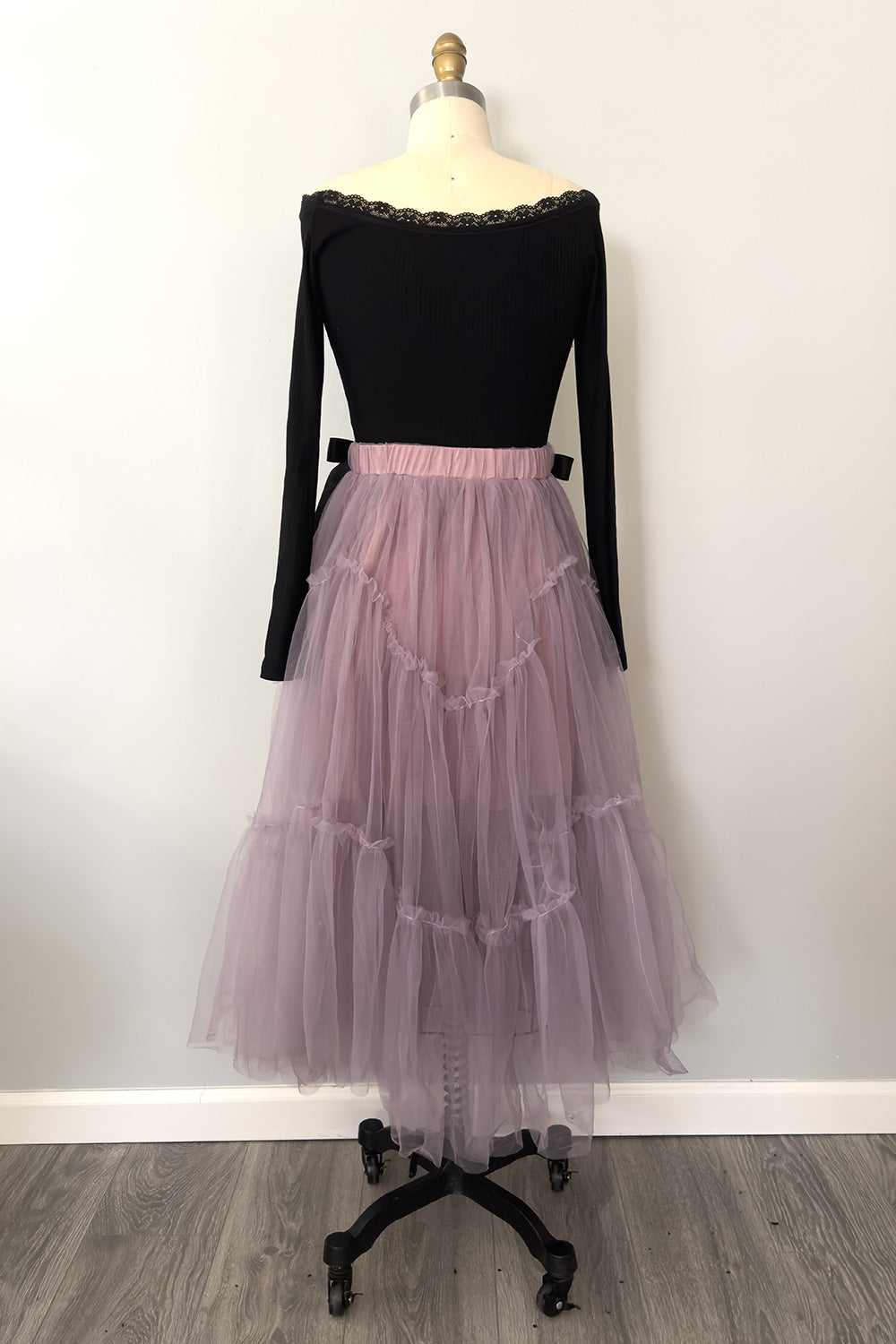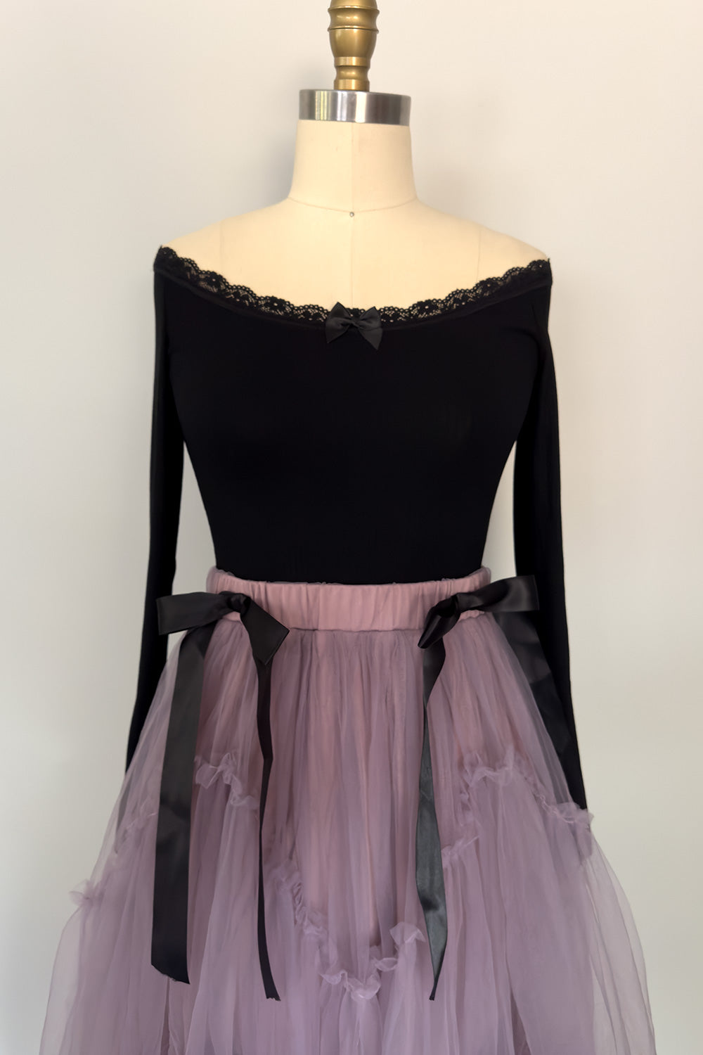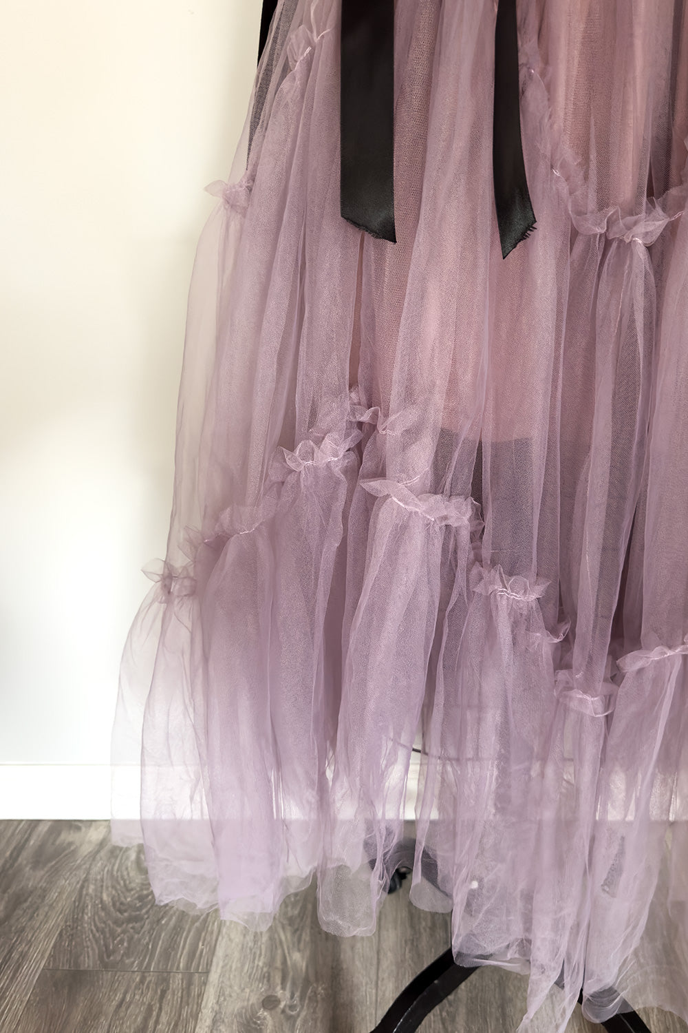 Fairy Goth-mother Layered Tulle Skirt with Bows in Lavender