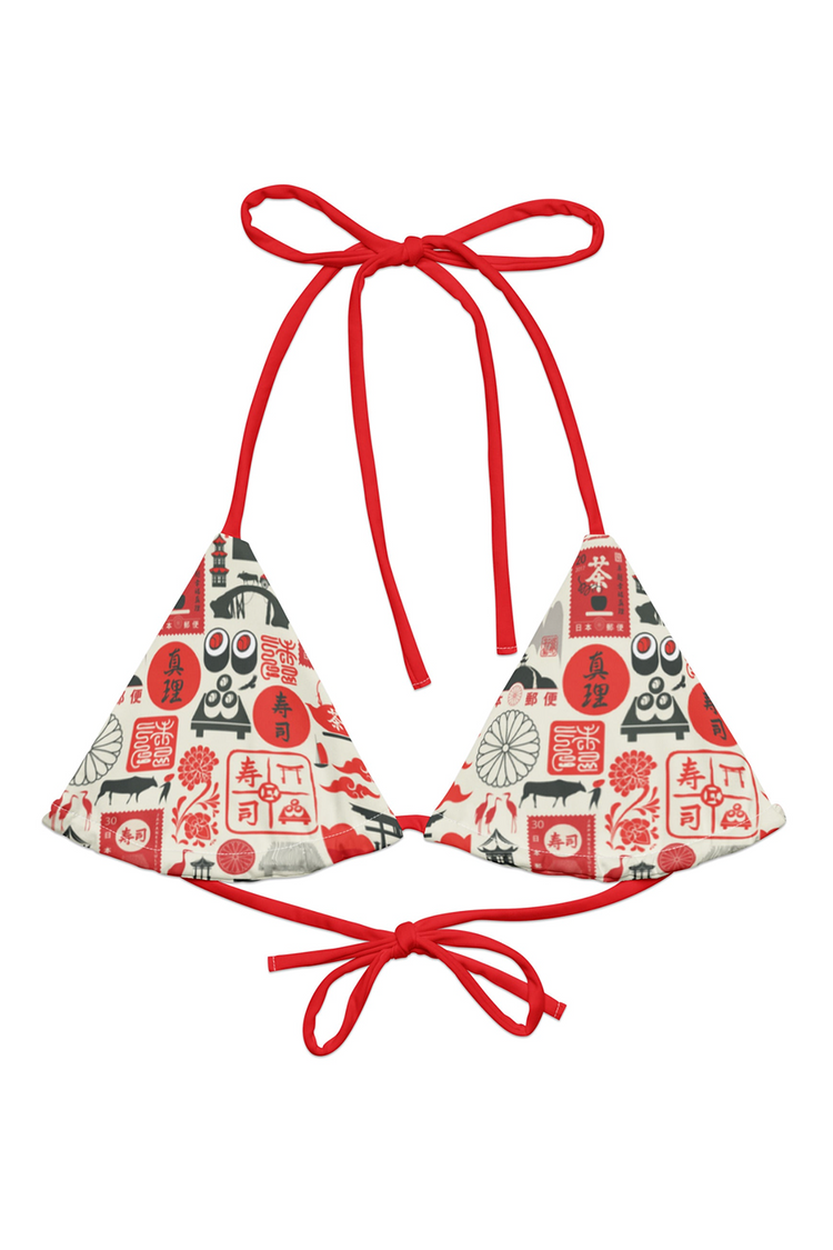 Disclaimer: To make your All-Over Print Recycled String Bikini Top last longer, thoroughly rinse it off after each use and get rid of any chlorine/salt residue.