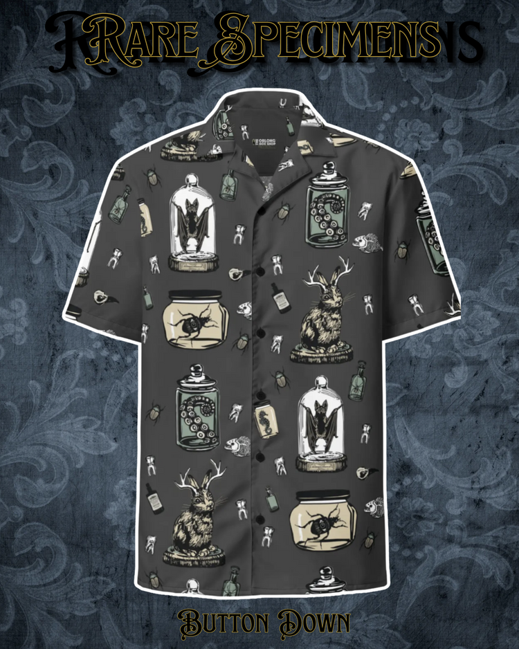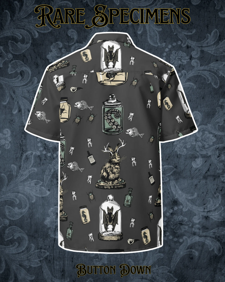 Our new Rare Specimens Oddities print button down is the perfect design for any oddities enthusiast!